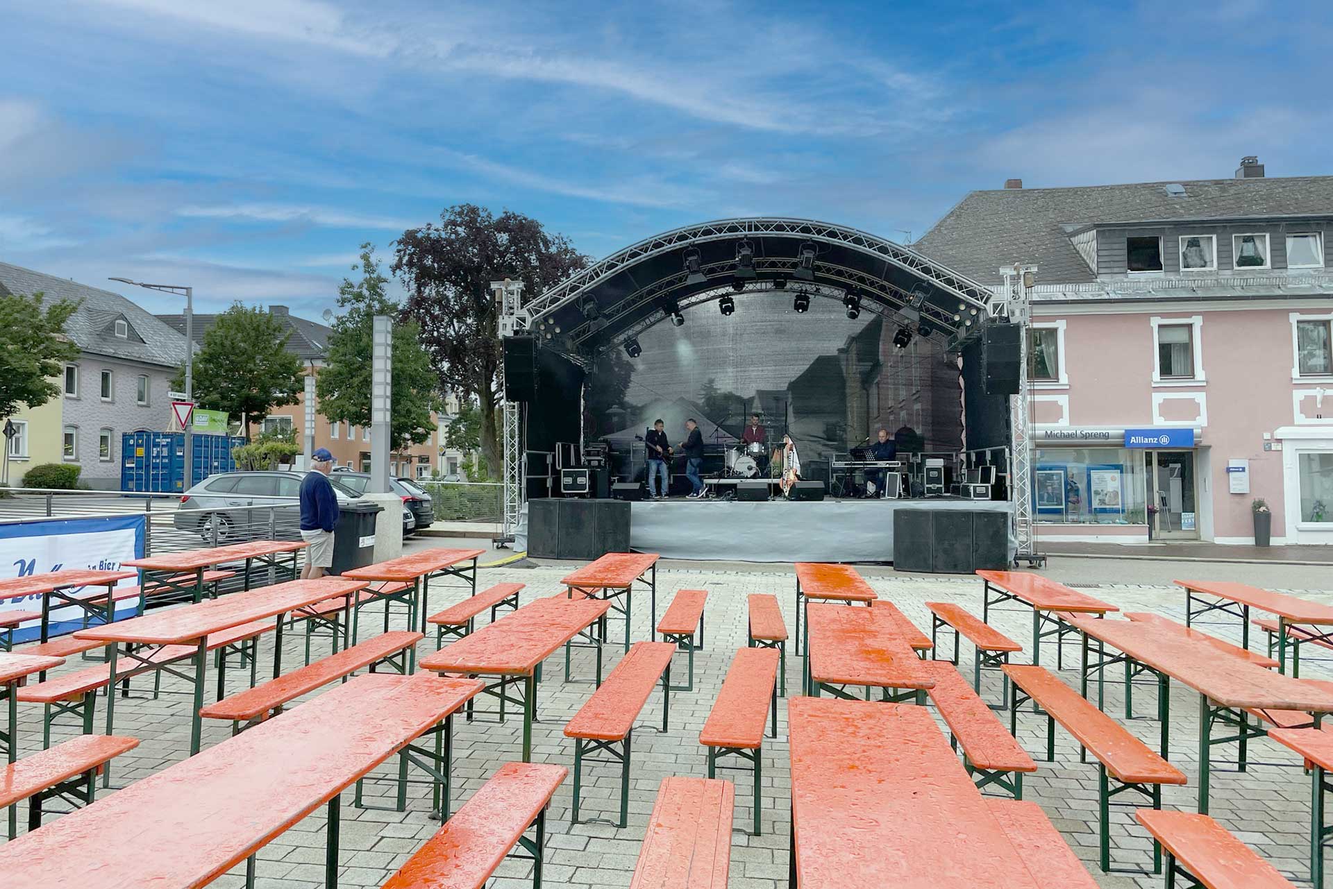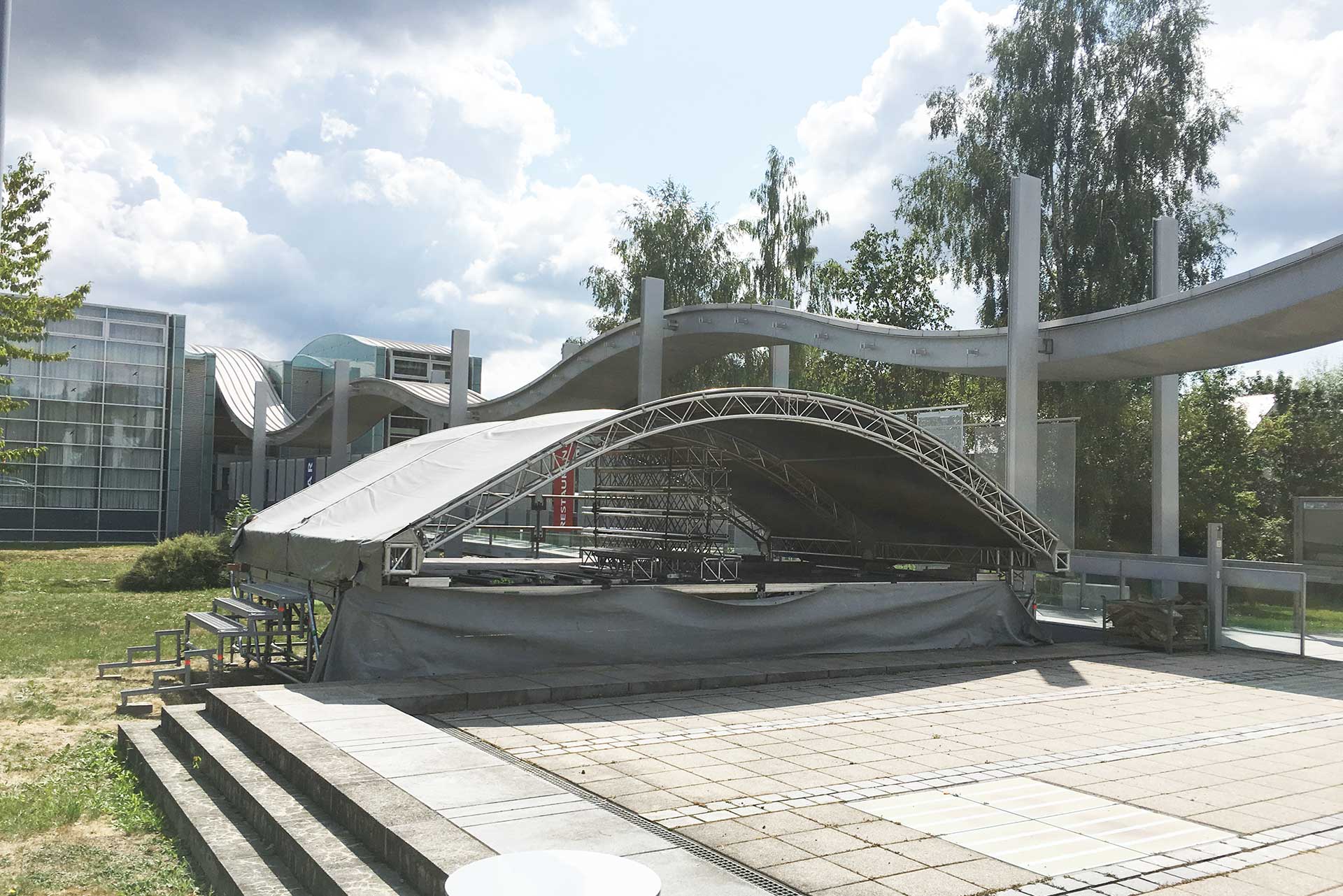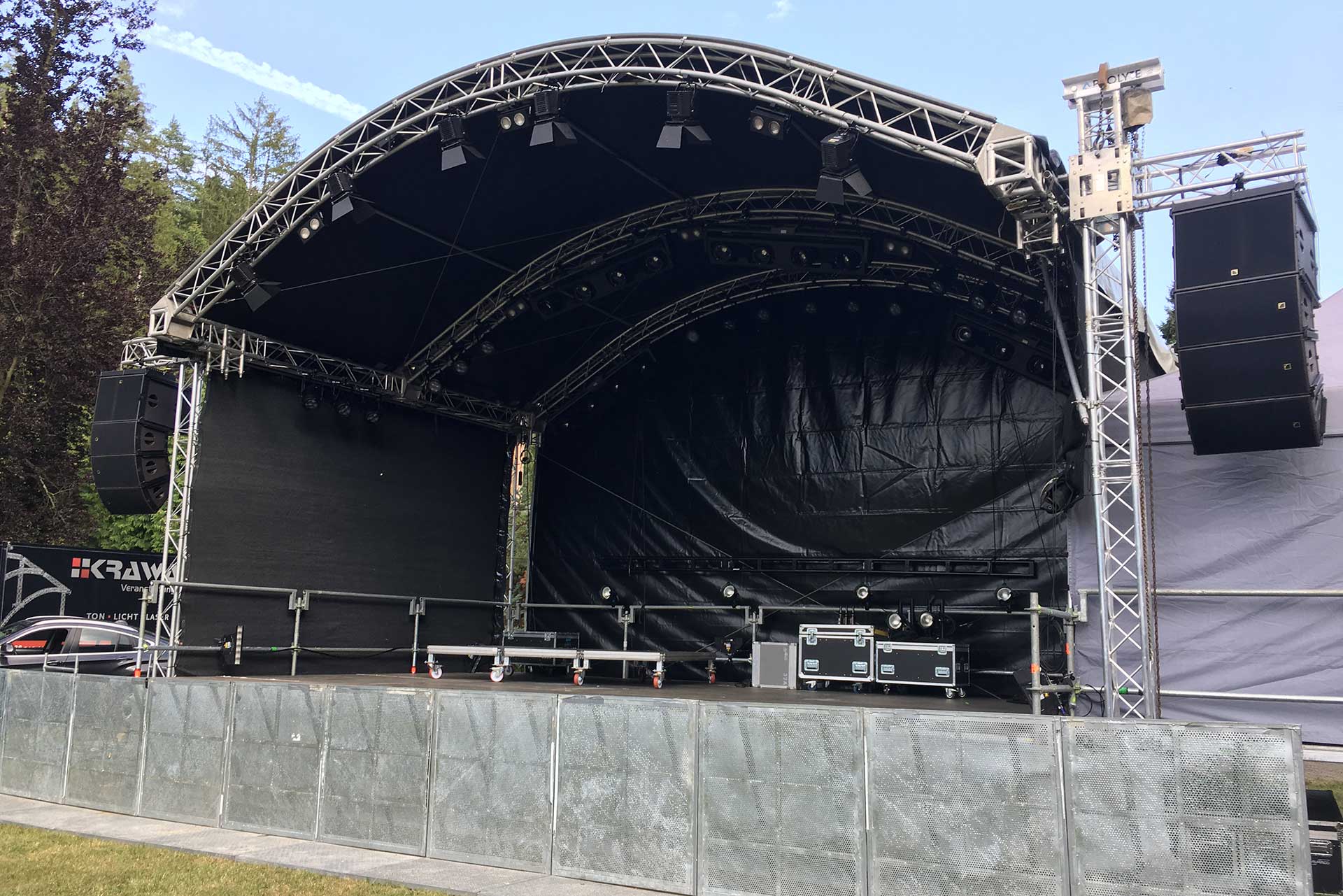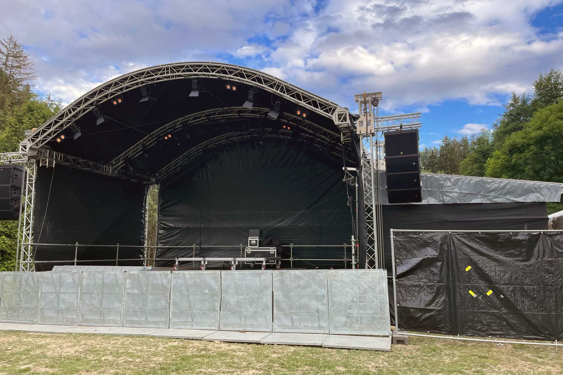 Der „Allrounder“ ist verhältnismäßig zügig aufgebaut. Durch seine Rundbogenform bekommt die installierte Lichtanlage eine ganz besondere Atmosphäre. Bei Verwendung von Sleeveblöcken, ist es möglich ein 9m x 6m Podium einzubauen. Mit dieser Spielfläche und einem optionalen Monitoranbau ist es bereits möglich mittlere Festivals zu bespielen.